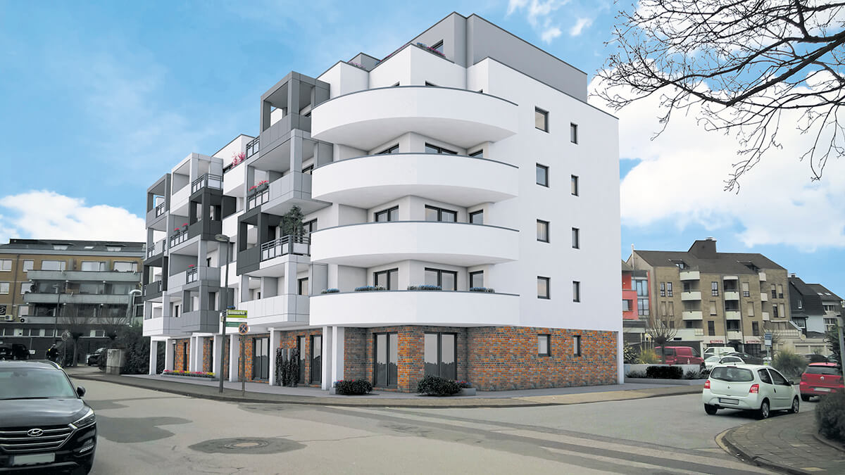 In Langenfeld auf der Montessoristraße 30/30a entsteht ein MFH mit 26 Eigentumswohnungen in fünfgeschossiger Bauweise zuzüglich Staffelgeschoss. Im Erdgeschoss werden 4 Büroeinheiten untergebracht.