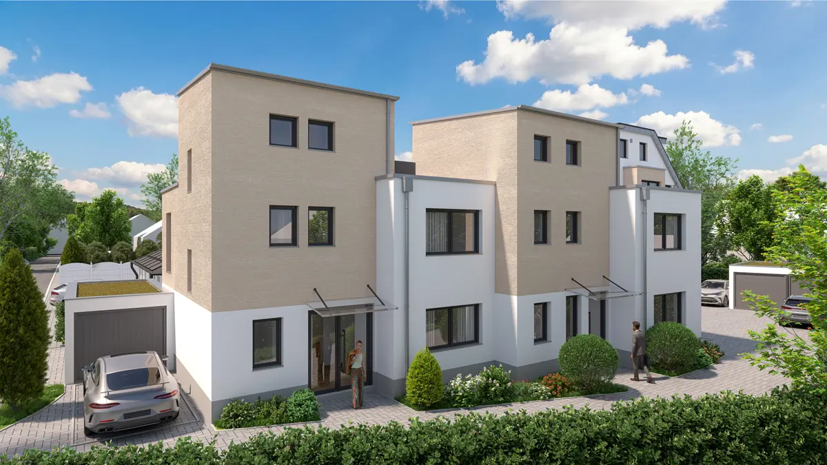 In grüner Lage entstehen in gewachsener Wohnstruktur von Korschenbroich-Herzbroich ein Mehrfamilienhaus in 2½- geschossiger Bauweise sowie zwei 2- geschossige Doppelhaushälften.